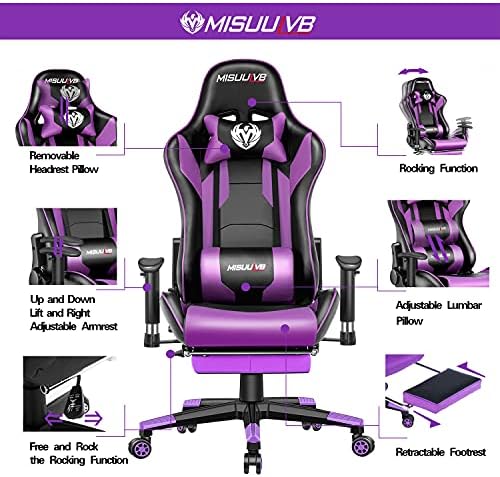 ✪Easy to Set Up Gaming Desk Office Chair for Customers: Misuulvb provides all of necessary tools and paper instructions when customers assemble this gaming racing chair. We also supply a reference assemble video on YouTube, so customers can learn how to set up this office gaming chair within 35-40 minutes.