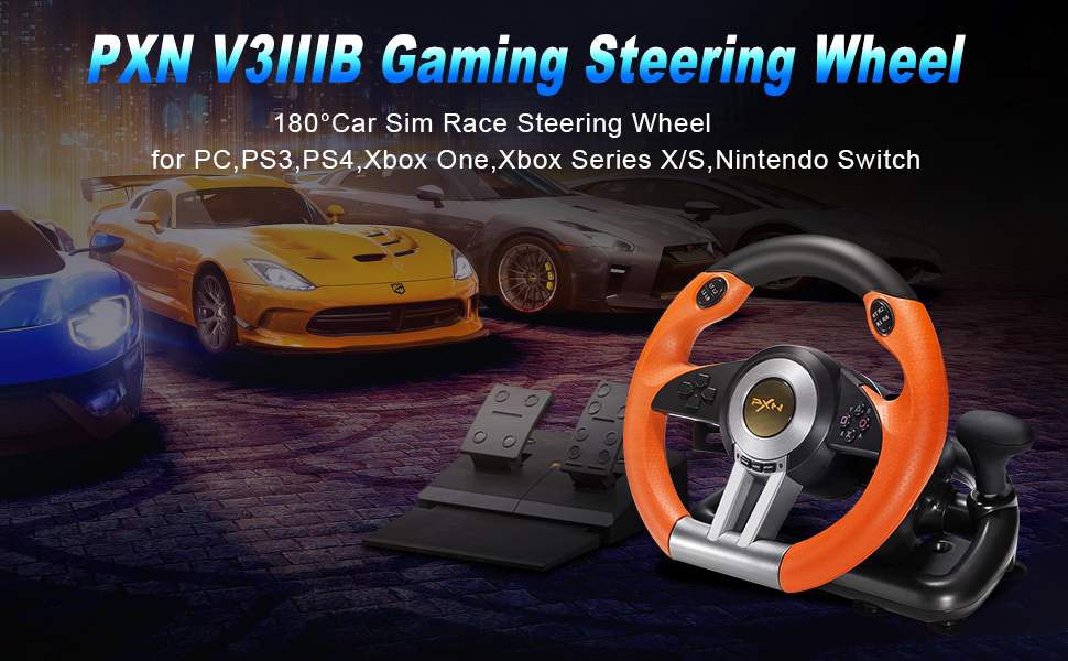 PXN V3III PS4 Gameing Steering Wheel,180° PC Racing Wheel and Dual Motors Vibration,PS4 Racing Wheel with Linear Pedal/Accelerator Brake,for PC/PS4/Xbox One/Xbox Series X|S/Switch(Orange)