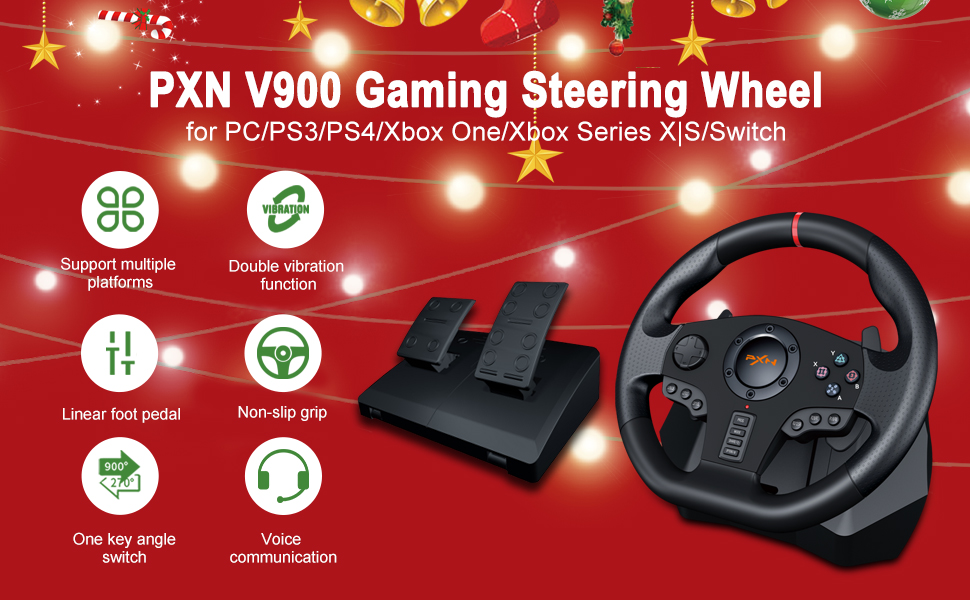 PXN V900 Gaming Steering Wheel – 270/900° PC Racing Wheels with Linear Pedalsm, Accelerator Brake, Left and Proper Racing Shift Paddle Simulator for PC, PS3, PS4, Xbox One, Xbox Collection X|S, Xmas Present Field