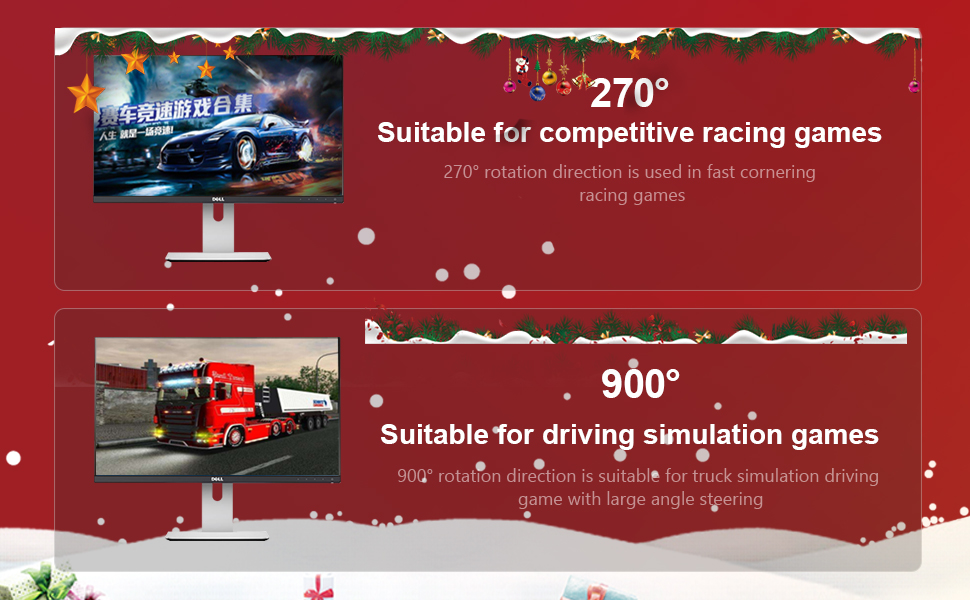 ● Racing mode: 270° racing automotive, 900° truck simulation