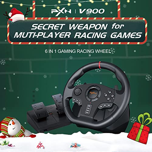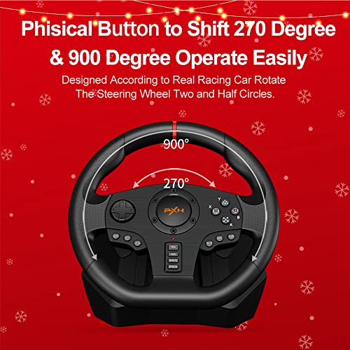 PXN V900 PC Steering Wheel with Pedals and Shift Paddle Common Usb Automotive Sim 270/900 Diploma Racing Wheel Appropriate with PS3, PS4, Xbox, One,Xbox Sequence X/S, PC,Nintendo Change,Android TV (Christmas Reward Field)