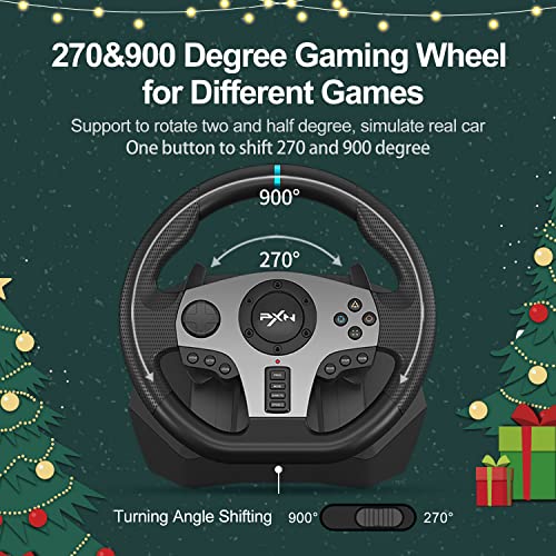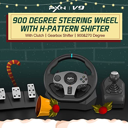 PXN V9K Racing Steering Wheel Gaming Racing Wheel , Driving Wheel Volante PC 270/ 900 Diploma Vibration and Shifter with Pedals for PC,PS4,Xbox One,Nintendo Swap,PS3,Xbox Sequence S/X