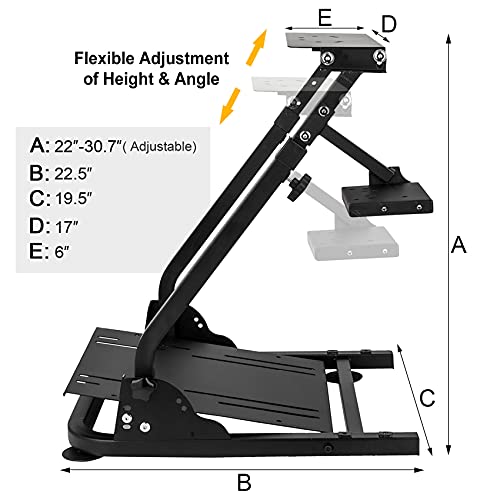 【Flexible Adjustment of Height & Angle】- Wheel stand is adjustable in angle and height (from 22″ up to 30.7″) , and the wheel plate is adjustable in angle, which is ergonomically designed to make the driver more convenient and comfortable.In addition to, this design also suit the different needs of different players.
