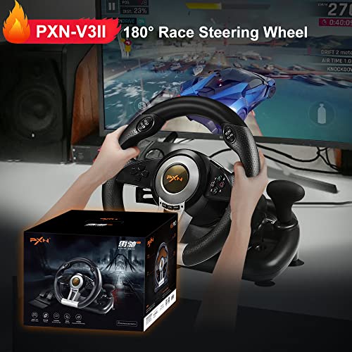 Racing Wheel, PXN V3III Professional 180 Diploma Automobile Race Driving Simulator Sport Steering Wheel with Pedals for PC, PS4 ,PS3 , Nintendo Swap, XBOX ONE, Xbox Sequence X|S (Black)