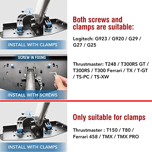 ►【Appropriate Mannequin】: It is a common design steering wheel Stand, appropriate for many fashions, appropriate for Logitech: G923 / G920 / G29 / G27 / G25 and appropriate for Thrustmaster: T300RS GT / T300RS / T300 Ferrari / TX / T-GT / TS-PC / TS-XW / T150 / T80 /T248/ Ferrari 458 / TMX / TMX PRO (together with different PS4/ PS5/ Xbox 360/ Xbox One/ PC)
