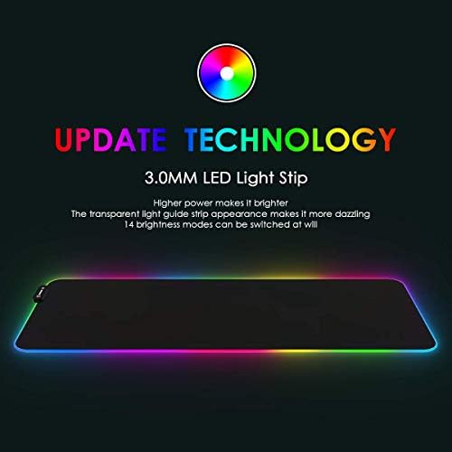 【Multiple Light Modes】The RGB gaming mouse pad has a brand-new 3.0 transparent LED light strip, creating a brighter shine that provides a cooler game environment for you. The extended mouse pad has 14 light modes, 7 static and 7 dynamic modes. Easily control with two buttons that turn the pad on/off and change the light modes.