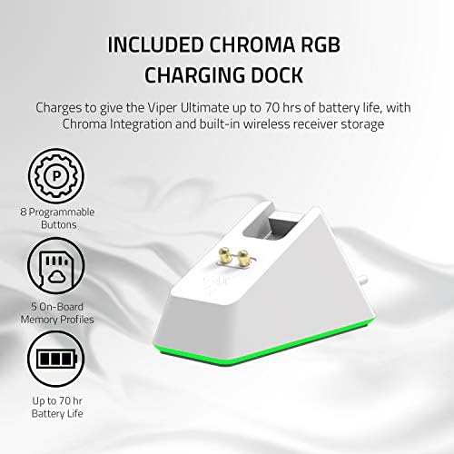 Razer Viper Final Lightest Wi-fi Gaming Mouse & RGB Charging Dock: Hyperspeed Wi-fi Know-how – 20K DPI Optical Sensor – 78g Light-weight – 70 Hr Battery – Mercury White