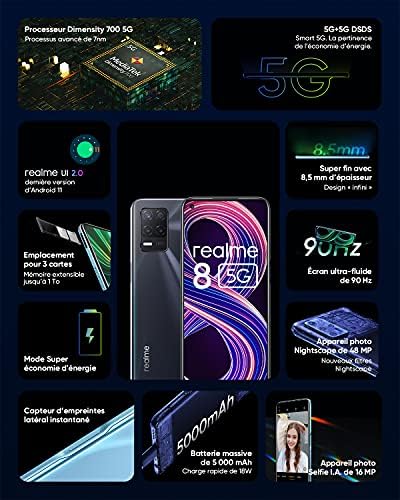 Realme 8 5G + 4G Volte GSM Unlocked World USA Latin Europe Octa Core 48MP Triple Digital camera (NOT Verizon/Increase/CDMA) (Blue Supersonic, 128+6GB)