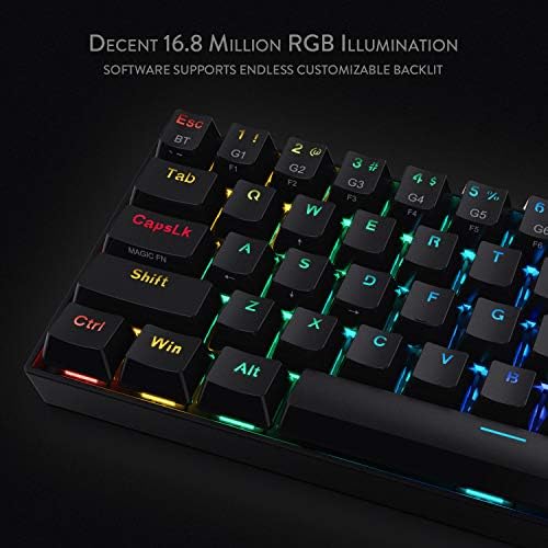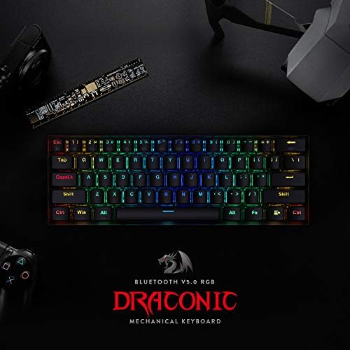 Redragon K530 Draconic 60% Compact RGB Wi-fi Mechanical Keyboard, 61 Keys TKL Designed 5.0 Bluetooth Gaming Keyboard with Brown Switches and 16.8 Million RGB Lighting for PC, Laptop computer, Cell Cellphone