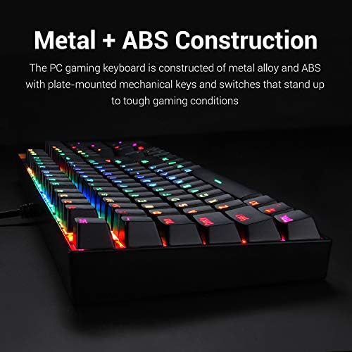 Redragon K551 Mechanical Gaming Keyboard RGB LED Backlit Wired Keyboard with Blue Switches for Windows Gaming PC (104 Keys, Black)