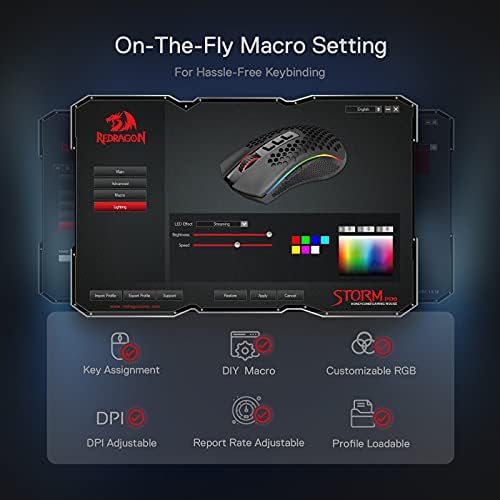 Redragon M808 Storm Professional Wi-fi Gaming Mouse, RGB Honeycomb Type – 16,000 DPI Optical Sensor – 7 Programmable Buttons – Exact Registration