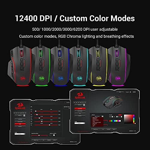 Redragon M901 Gaming Mouse RGB Backlit MMO 19 Macro Programmable Buttons with Weight Tuning Set, 12400 DPI for Home windows PC Laptop (Wired, Black)