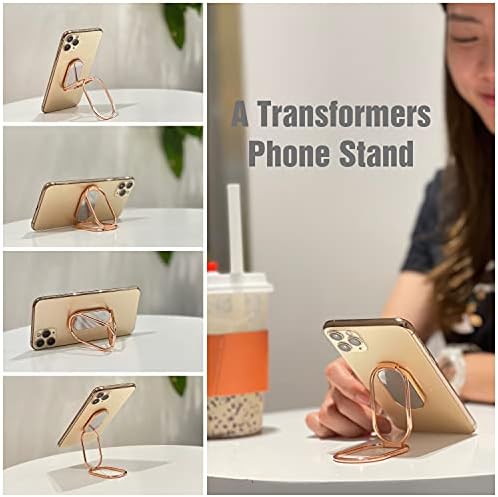 Retractable Telephone Ring Holder Cell Telephone Grip Foldable Ring Stand 360°Rotation Finger Kickstand Attachment for iPhone iPad Smartphones Tablets Suitable with Magnetic Automobile Telephone Mount (Rosegold)