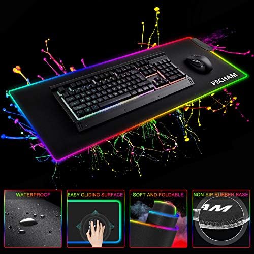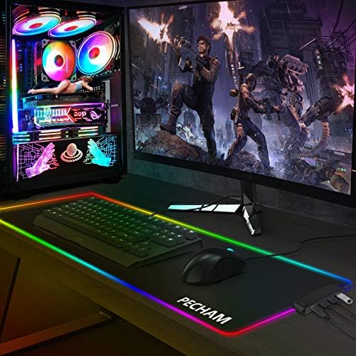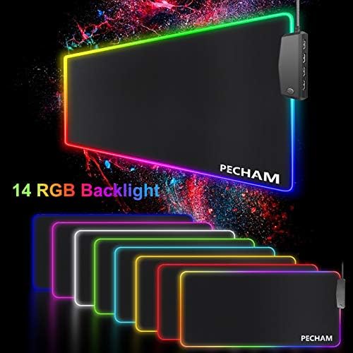 RGB Gaming Mouse Pad with 4 USB Port&14 LED Mild,PECHAM 4mm LED Tender Additional Prolonged Giant Mouse Pad , Anti-Slip Rubber Base, Pc Keyboard Mouse Mat Desk Pads- 31.5 X 12 Inch