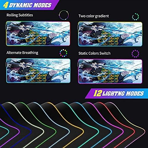 RGB Giant Gaming Mouse Pad Anime Giyuu Sword kimetsu no Yaiba,Laptop computer Desk Pad,Mousepad with Stitched Edge Body & Non-Slip Rubber Base,Laptop Keyboard and Mice Pads Mouse Mat 35.4X15.7