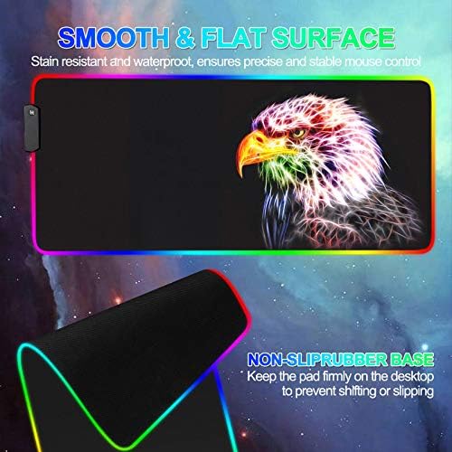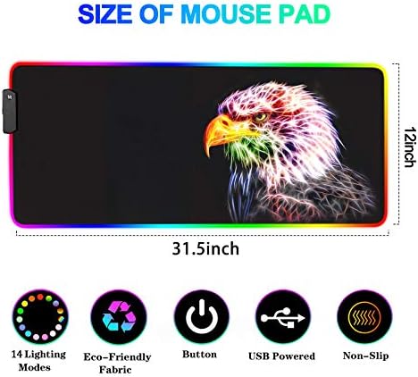 RGB Mouse Pad,Gaming Mouse Pad RGB,Cool Animal LED Mousepad-14 Gentle Modes Gentle Non-Slip Base Massive LED Mouse Mat for Laptop computer Pc PC Video games 31.5 X 12 inches (RGB Eagle Mouse Pad)