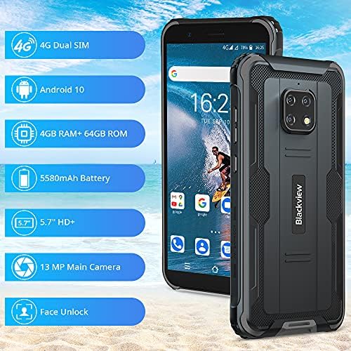 Rugged Smartphone, Blackview BV4900 Pro Android 10 Shockproof Cellphone with 5.7 Inch, 4+ 64GB, 5580mAh Battery, 13MP + 5MP, 4G Dual Sim Unlocked Cell Phones, NFC/GPS/OTG Android Phones, Black