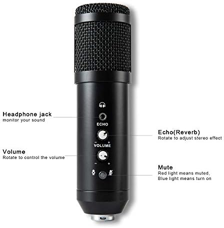 User-Friendly Design – USB recording microphone with mute/unmute knob, volume knob, and Echo knob, Make the mic to reach a perfect voice and much easier for you to use. The 3.5mm headphone jack for zero-latency monitoring, so you can record and overdub in real-time.