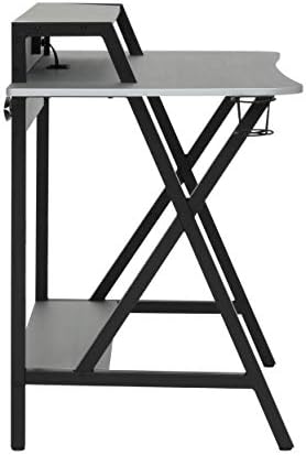 The Challenger Broad PC Gamer Laptop Desk with Charging Station, Cup and Headphone Holder by SD Gaming options a big 47.5” w x 23.75” deep gaming floor with a simulated carbon fiber end and a beveled entrance cutout that retains you nearer to the monitor with out sacrificing room in your equipment. It additionally offers gamer particular options: a cup holder and headphone hook that save desktop area. This gaming desk has an influence console that gives 3- grounded outlet receptors and 2-USB charging ports to maintain your equipment powered. The desktop additionally has a twine administration gap with cowl for organizing your electrical cords. The metal body has a powder-coated end that resists scratches and corrosion. The ground levelers and again panel present stability. The underside shelf offers further storage for bigger objects.