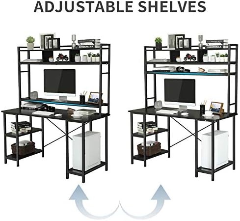 Sedeta Laptop Desk with Hutch and Monitor Shelf, 55 Inches Gaming Desk with Adjustable Cabinets and Storage, Residence Workplace Desk with Bookshelf, CPU Stand, PC Examine Desk Workstation, Black