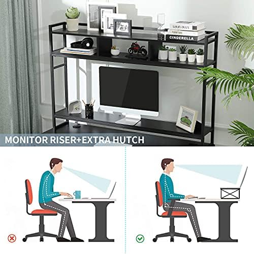【Multifunctional Desk】Create a flexible workstation that’ll meet all of your wants with this all-in-one workplace desk with hutch shelf, monitor riser, storage bookshelves and CPU stand; Use this pc monitor riser to simply increase your monitor to only the correct top, discount of again and neck pressure and ache. It may also be adjusted upwards, the large desktop plus hutch cabinets provide ample room for work necessities.