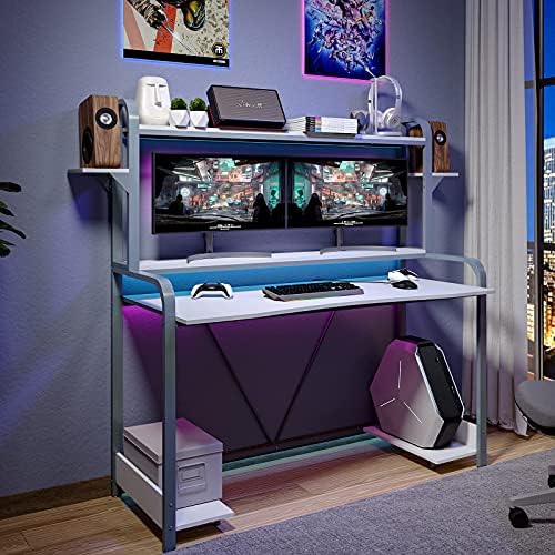 Sedeta Pc Desk with Hutch and Storage Cabinets, 55” Gaming Desk, Giant PC Gamer Desk Workstation with Monitor Stand, Gaming Desk for Bed room, Finding out Writing Desk for Residence Workplace, White
