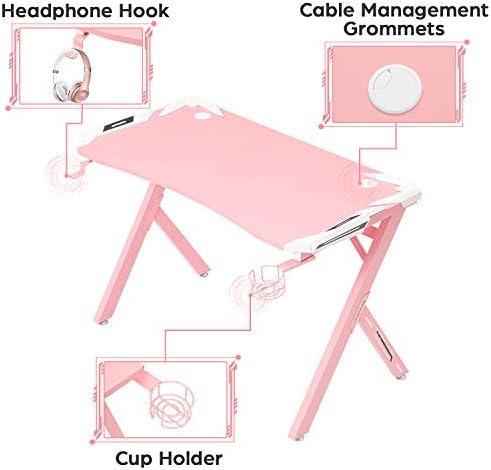 ✔【Pink Gamer Desk】All of the free assorted equipment for this gaming desk is only for providing you a extra snug really feel and higher play. This pink gaming desk comes with two cables administration grommets, a cute Mousepad, a Rotatable Cup Holder, a Headphone Hook for ladies’ higher sport expertise. Standard Reward for Lady/Feminine/E-Sports activities Lover Left Aspect.