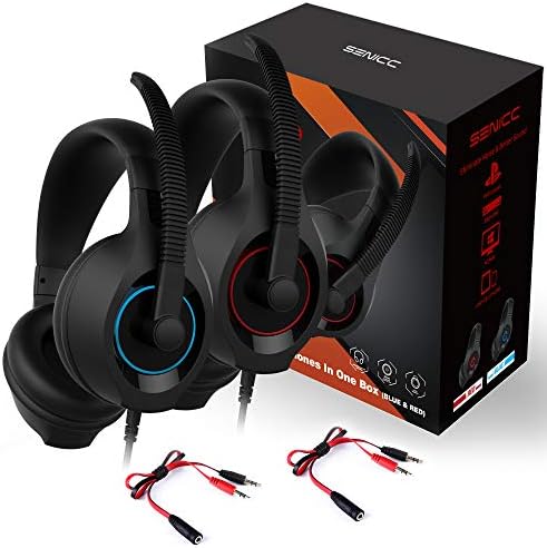 SENICC 2 Pack Gaming Headset with Microphone for PS4 Xbox One, Over Ear 3.5mm PC Headphone with Light-weight Design Noise Cancelling Quantity Management for Laptop computer, Mac, iPad, Pill