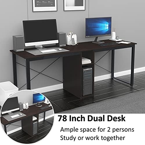 Soges Giant Double Workstation Desk, 78 inches Twin Desk 2-Individual Pc Desk, Residence/Workplace Desk/Writing Desk with Shared Storage, Black LD-H01