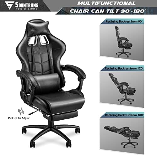 Soontrans Gaming Chair Black with Footrest for 400lbs Huge and Tall Particular person,Laptop Chair,Giant Measurement Gamer Chair,Excessive Again Video Recreation Chair with Headrest,Therapeutic massage Lumbar Pillow (Black)