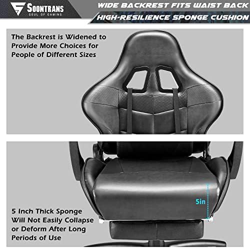 [Large Size for Extra Comfort] – Soontrans newly designed high-back gaming chair is wider than atypical laptop chair, is supplied with a 5-inch excessive seat cushion stuffed with high-density foam, and is roofed with high quality PU leather-based to give you essentially the most comfy expertise.