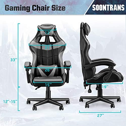 Soontrans Gaming Pc Chair,Recreation Chair,Ergonomic Gamer Chair,Racing Video Recreation Chair for Adults Teenagers with Excessive-Again,Adjustable Headrest and Lumbar Assist(Galaxy Gray)