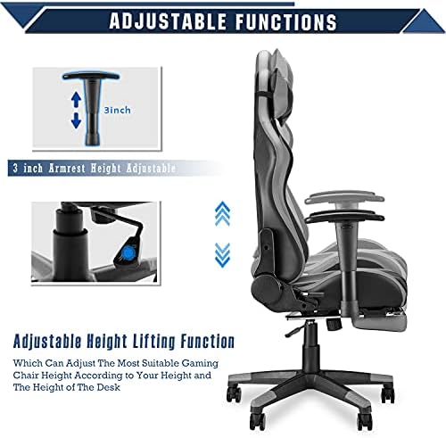 Soontrans Racer Type Gaming Chair with Footrest,Gamer Chair, Sport Chair,Swivel Desk Chair with Backrest Seat Top Adjustable Headrest and Lumbar Pillow(Black/Grey)