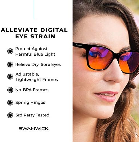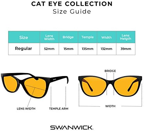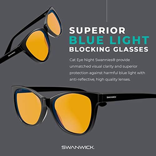 Swanwick: Cat Eye Night time Swannies – Black – Premium Blue Gentle Blocking Glasses – Common – Orange Tint for Superior Blue Gentle Blocking from Gaming PC and Smartphone Display screen Glare – Sleep Assist
