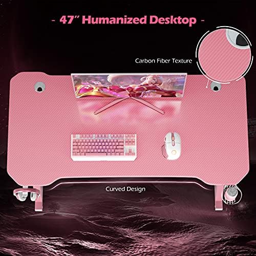 Tangkula Pink Gaming Desk, Z-Formed Laptop Desk w/Adjustable Foot Pads, Ergonomic Gamer Desk w/Horizontally Rotatable Headphone Hook & Cup Holder, Humanized Dwelling Workplace Desk for Gaming (Pink)
