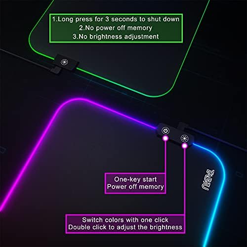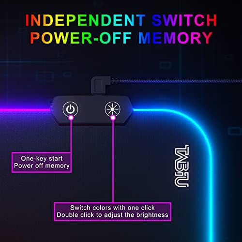 【Plug and Play】: TNBIU gaming mouse pad is powered by USB, no driver is required. Unique two-button design, one-button power switch, one-button switch light mode, double-click brightness adjustment. There is no need to long-press to switch colors and turn off the power, just one key to solve.