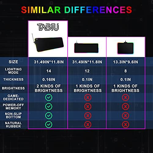 【Humanized Design】: TNBIU gaming mouse pad has a power-off memory function to ensure that the light mode before turning it on or off next time. The mouse pad is made of natural rubber, which makes it more durable and durable without wrinkles and creases.