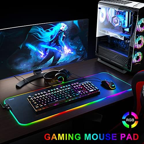 TNBIU Large RGB Gaming Mouse Pad, Soft LED Mouse Pad with 14 Lighting Modes and 2 Levels of Brightness, with Non-Slip Rubber Base and Power-Off Memory, Computer Keyboard Mouse Pad for Gamers 31.5×11.8