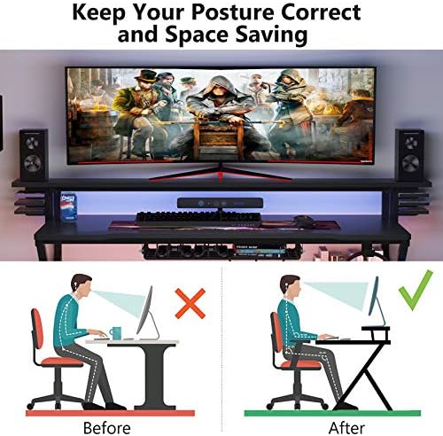 [Spacious Desktop with Monitors Stand]:Tribesigns Gaming Desk comes with a big monitor stand(59 inches), an important operate for sitting posture correction and storage, it’s designed for twin gaming monitor or gaming gear. Nonetheless leaves clear work area for paper and pencil actions.