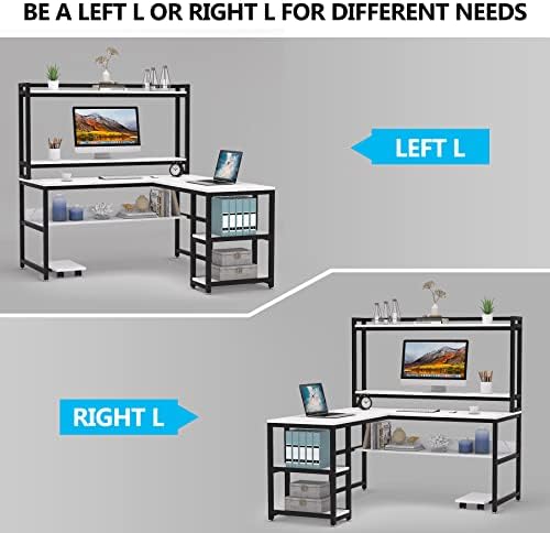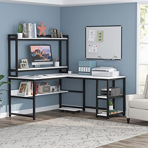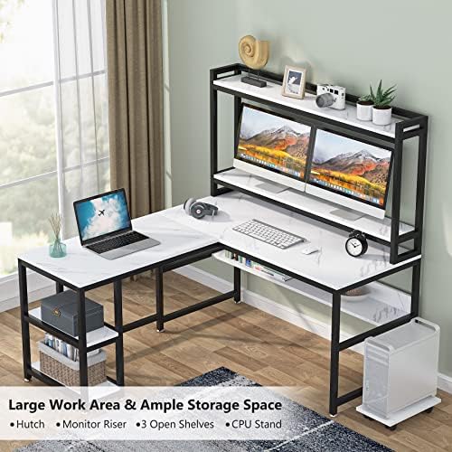 Tribesigns L-Formed Desk with Hutch and Storage Cabinets, 59 Inch Nook Laptop Workplace Desk Gaming Desk Workstation with Bookshelf and Monitor Stand for Dwelling Workplace (Fake Marble White)