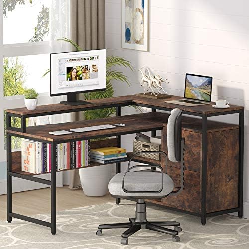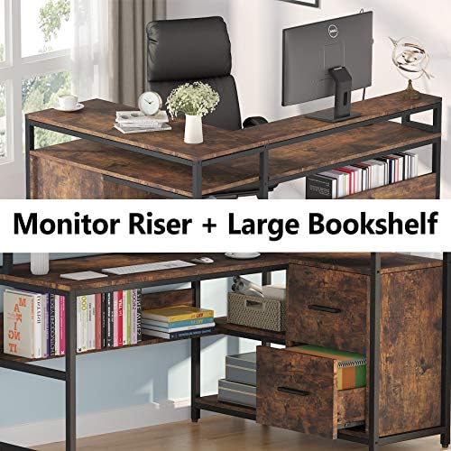 Multifunctional L-shaped Desk: Completely integrating Spacious Desktop, Monitor Riser, Printer Cupboard, 2 File Drawers, Storage Cabinets and Small Bookshelf in a single, this L formed pc desk can simply meet all of your wants in house workplace. NOTE: THIS DESK WILL BE DELIVERED WITH TWO SEPARATE PACKAGES