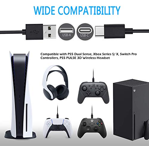 USB Charging Cable Suitable for Xbox Core Controller/Robotic White/Carbon Black/Shock Blue, Quick Charging USB Sort C Charger Twine Campatible with PS5 Twin Sense Controllers, Nintendo Swith, Swap Lite