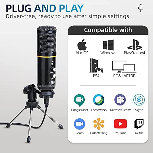 USB Microphone, Condenser Microphone, Appropriate with Home windows/MAC and Laptop computer, Skilled Plug&Play Laptop Microphone Used for Streaming, Podcast, Studio Recording and Video games