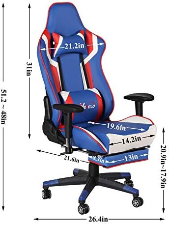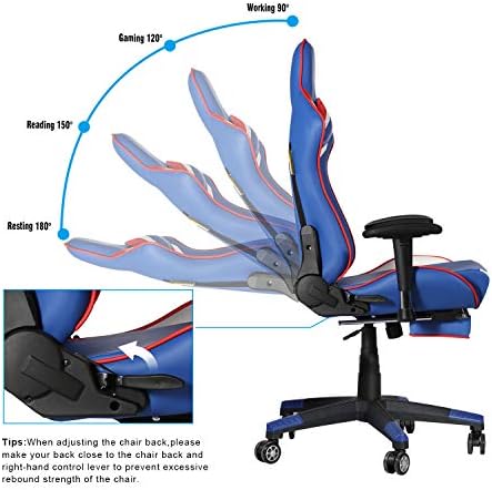 VECELO Video Gaming Chair with Seat Peak Adjustable Swivel Recliner Ergonomic Headrest,Retractible Footrest,Lumbar Pillow Esports, Blue