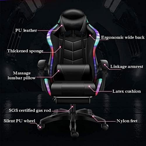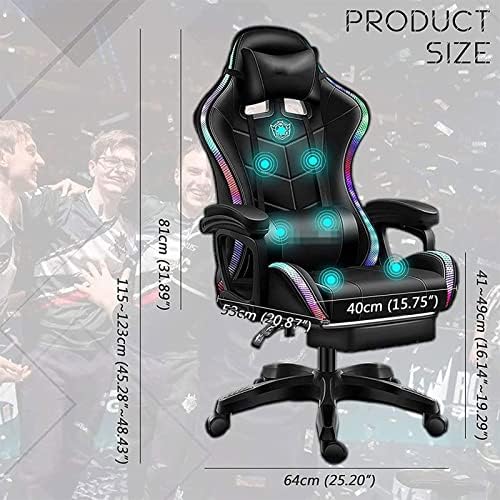 Video Gaming Chairs with LED Gentle, Gaming Chair with Full Therapeutic massage Lumbar Assist, Bluetooth Audio system Laptop Chair for Retractible Footrest and Backrest Adjustable (Shade : Black)