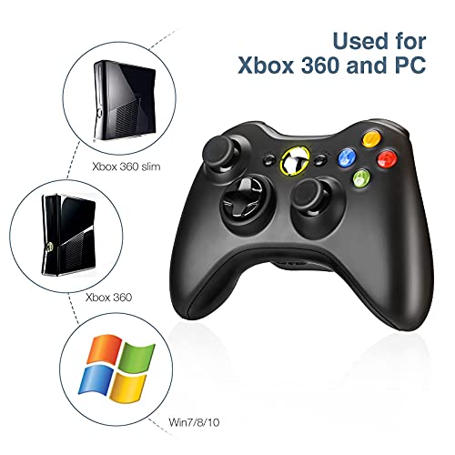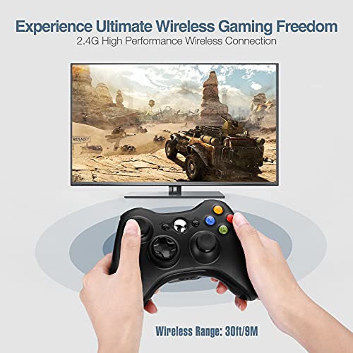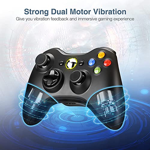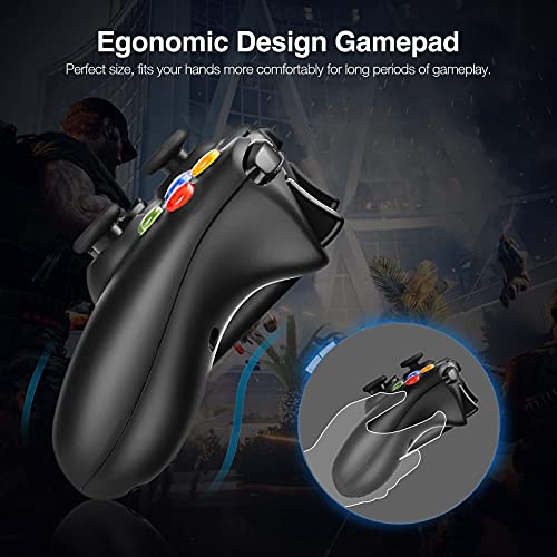 Wi-fi Controller for Xbox 360, Powerextra Xbox 360 Wi-fi Controller Gamepad Joystick for PC Win 7, 8, 10(Black)