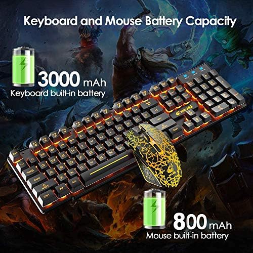 【Rechargeable Keyboard and Mouse Set】The gaming keyboard is sturdy and sturdy. It has alittle waterproof, and the keyboard builts-in 3000mAh battery. The mouse builts-in 800mAh battery ,eliminates the difficulty of steadily altering batteries. No operation mechanically sleeps inside 5 minutes, any key wakes up.