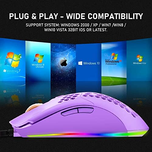 Wired Light-weight Gaming Mouse,6 RGB Backlit Mouse with 7 Buttons Programmable Driver,6400DPI Laptop Mouse,Ultralight Honeycomb Shell Ultraweave Cable Mouse for PC Players,Xbox,PS4(Purple) (Purple)