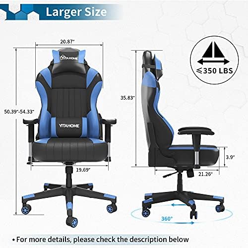 YITAHOME 400lb Capacity Gaming Chair with Headrest and Lumbar Support Big and Tall Heavy Duty High Back Office Chair Ergonomic Swivel Recliner Desk Chair with Adjustable Armrest, Blue