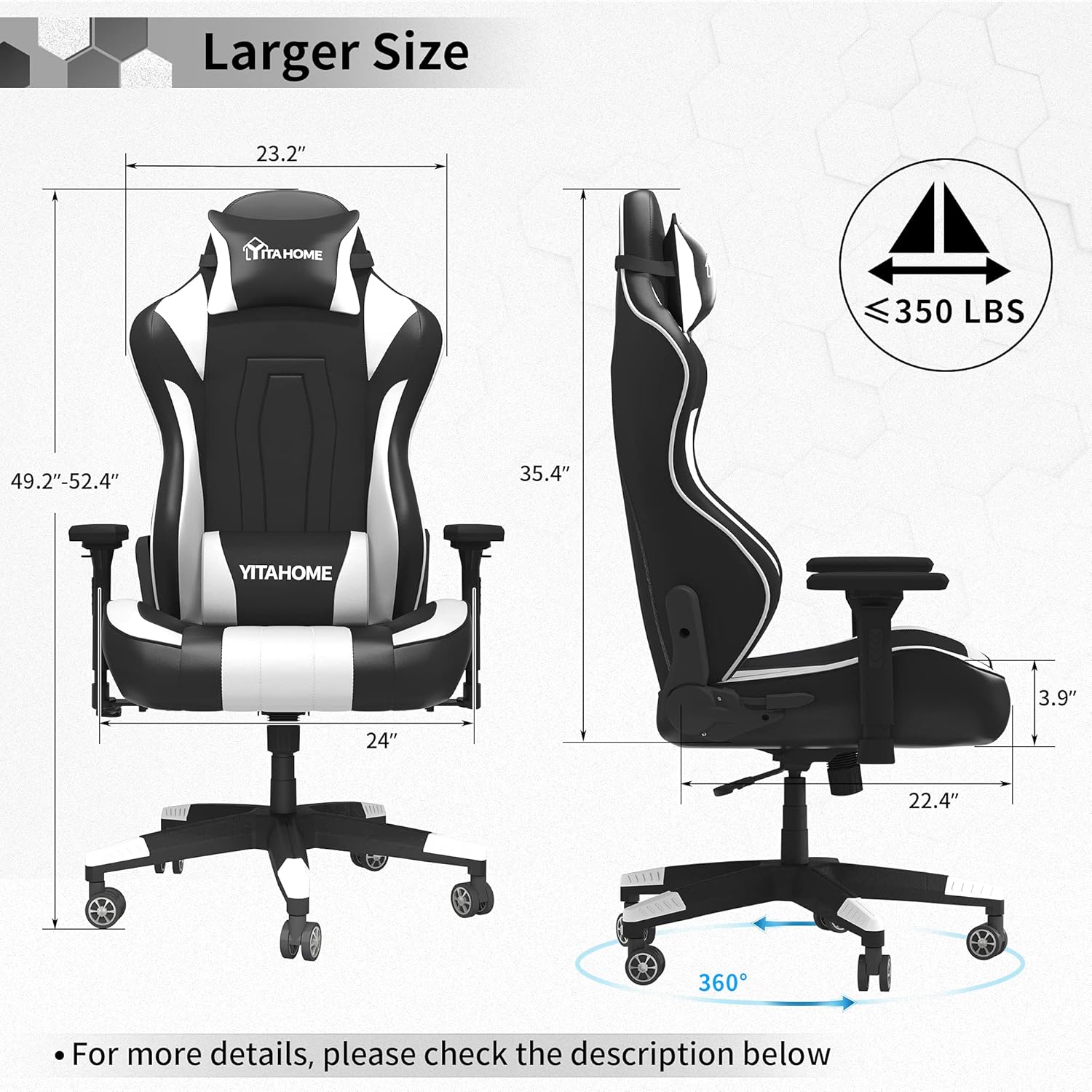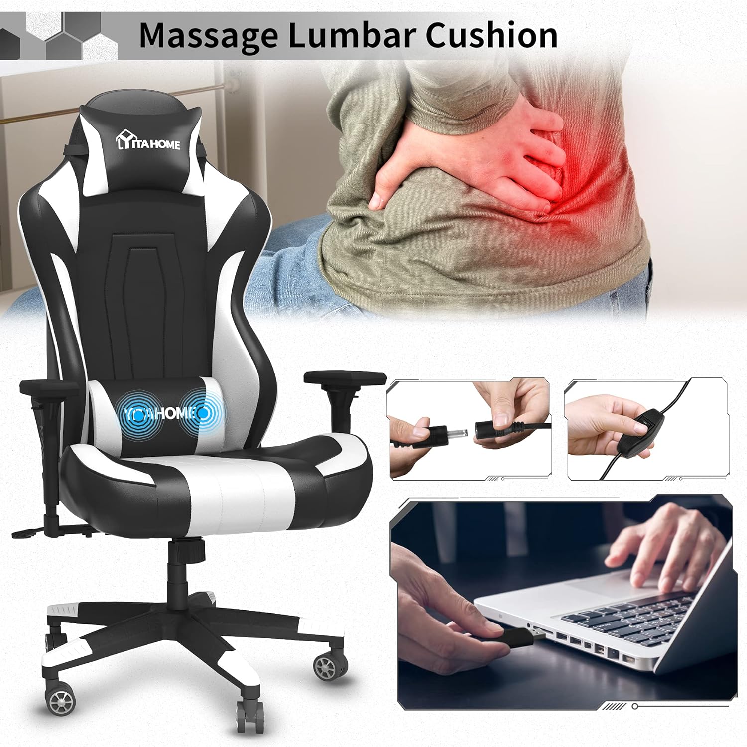 YITAHOME Therapeutic massage Gaming Chair Massive and Tall Heavy Responsibility 350lbs Ergonomic Video Sport Chair Excessive Again Workplace Laptop Chair Racing Type with Headrest and Lumbar Assist,White